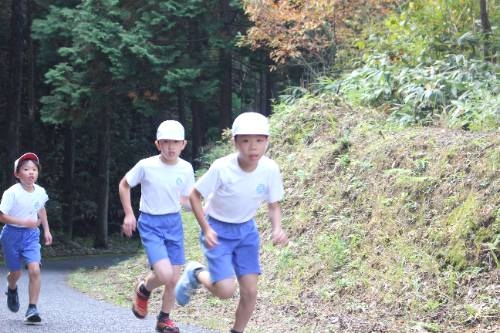 1年生から4年生は体育の時間に蓮花寺登山レースに向けた練習をしました。