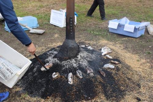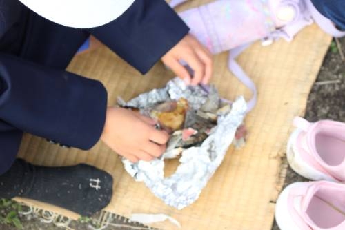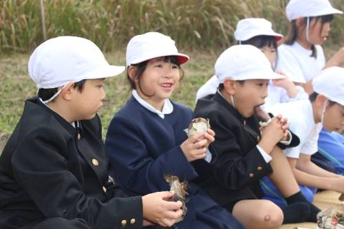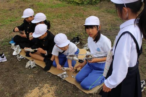 低学年は生活科の時間に栽培した畑で焼いも