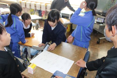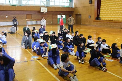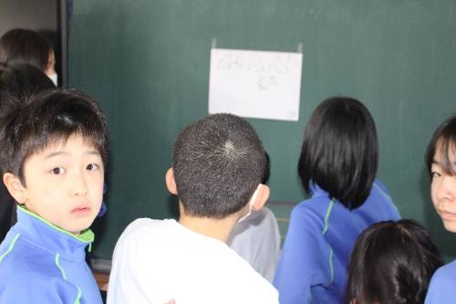 全校学校探検クイズ 2026-02-18 13:56:02 ◇文化委員会主催の学校探検クイズを「あよっ子タイム」でしました。ただのクイズではなく、あらかじめ文化委員会が予告した本を読んでいないと解くことができません。子どもたちは、「俺知っとる!」「おぼえとる!」などと口々に言いながら楽しそうにクイズに挑戦していました。