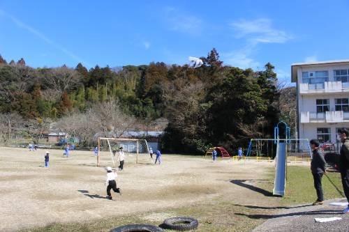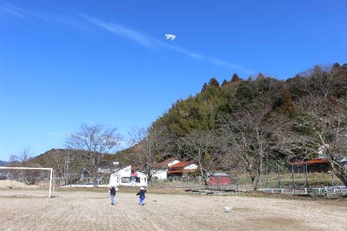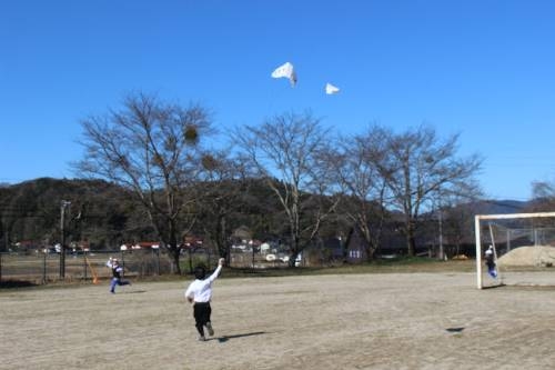 久しぶりの青空の下 2026-02-18 06:52:36 ◇2月17日(火)久しぶりの爽やかな青空の下で、1年生が6年生と一緒に凧揚げをして楽しんでいました。図工の時間に作った凧は冷たい風を受けてぐんぐん天高く上がっていきました。