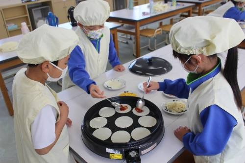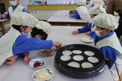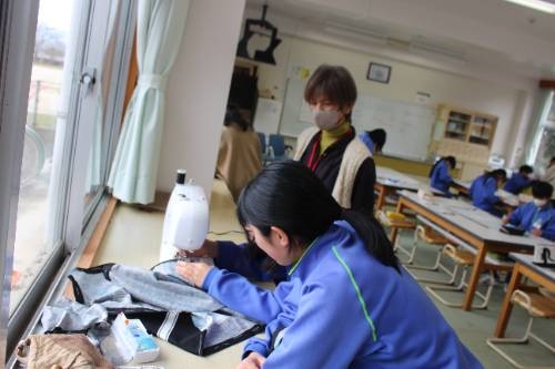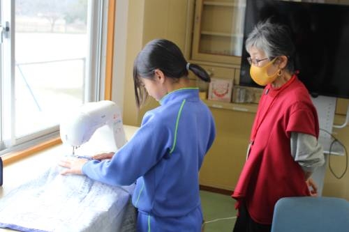 ミシンボランティアの方に教えていただきました。(5・6年生) 2026-02-20 11:21:25 ◇3名のミシンボランティアの方(常松さん、荒木さん、常松さん)においでいただき、5・6年生が、ミシンの学習をしました。ミシンはきれいに縫え便利な反面、糸が絡んだり針が折れたりとトラブルもよくあり、指導者泣かせです。今日は、指導の女鹿田教諭の他、藤原地域CN、陶山支援員、ミシンボランティア3名と合計6名の大人に見守られて5・6年18名が安心して学習できました。