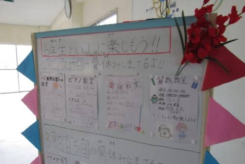 今日行ったのは「算数教室」「国語教室」「バスケット教室」「音楽教室」です。