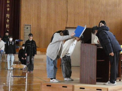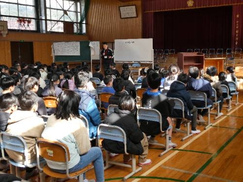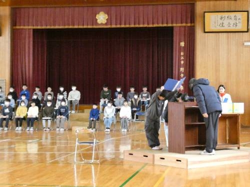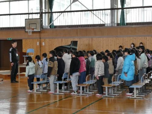 また、この日 1年生から5年生も体育館に集まり、心に残る卒業式にするための心構えや態度について話を聞いたり、歌練習をしたりしました。