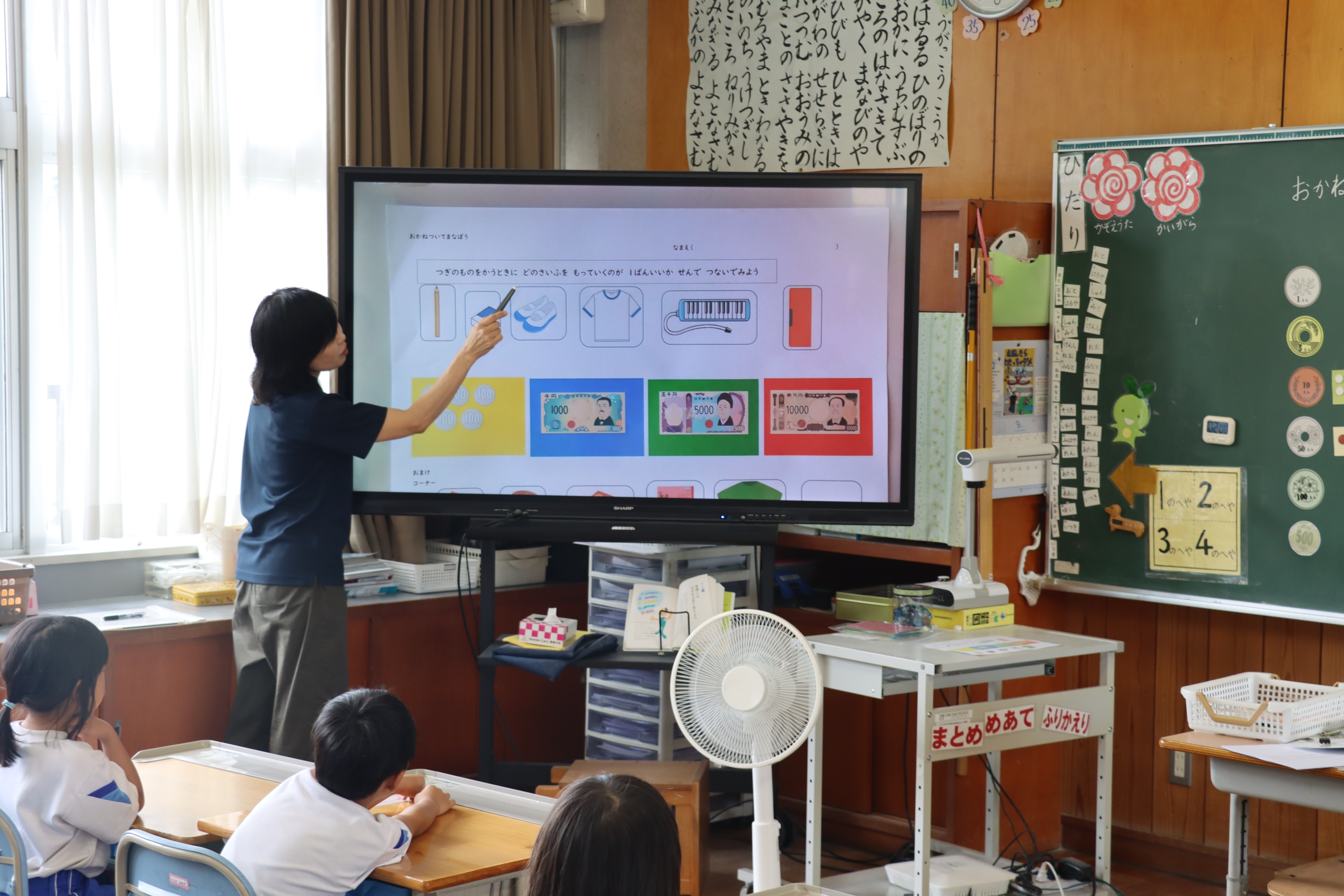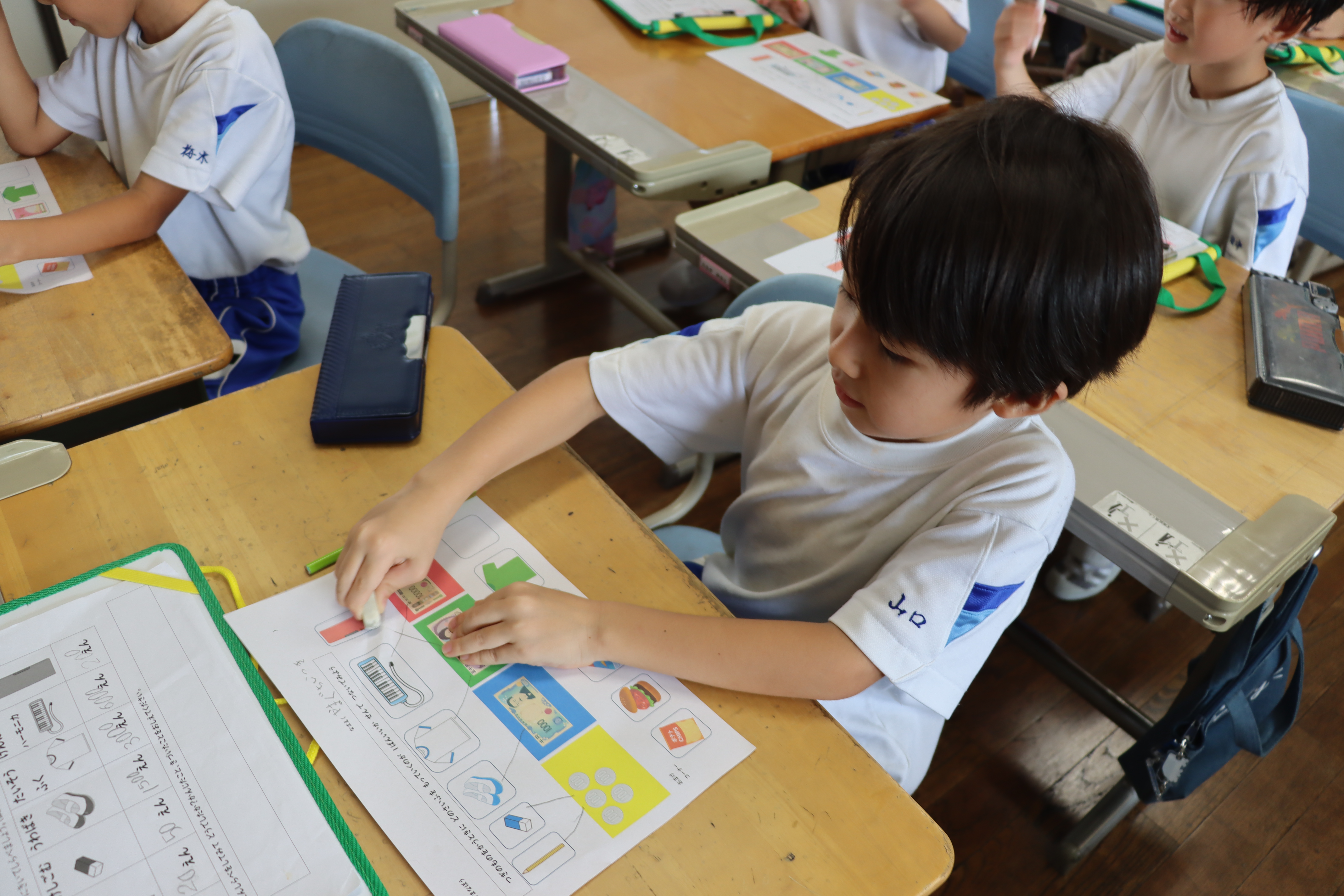 大きな数についてまだ学習していない1年生でしたが、身の回りの物の値段を手掛かりにしながら、買い物当日に必要なお金を一生懸命考えていました。