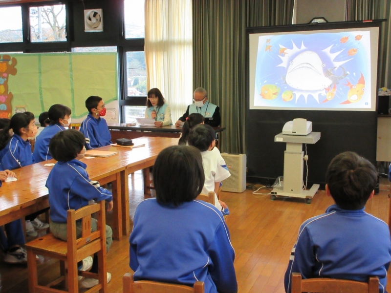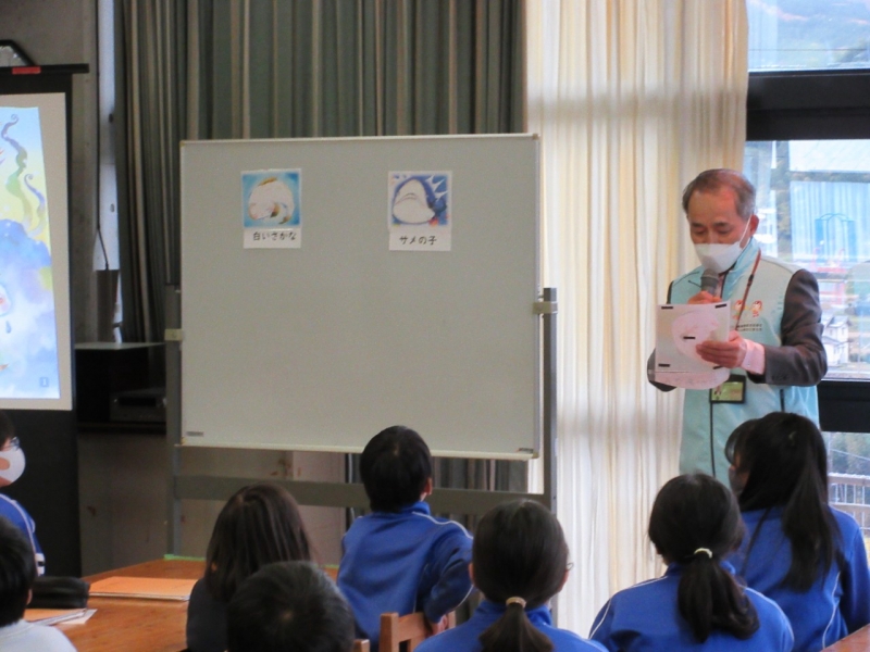 人権擁護委員さんには、紙芝居「白い魚とサメの子」を読み聞かせていただきました。