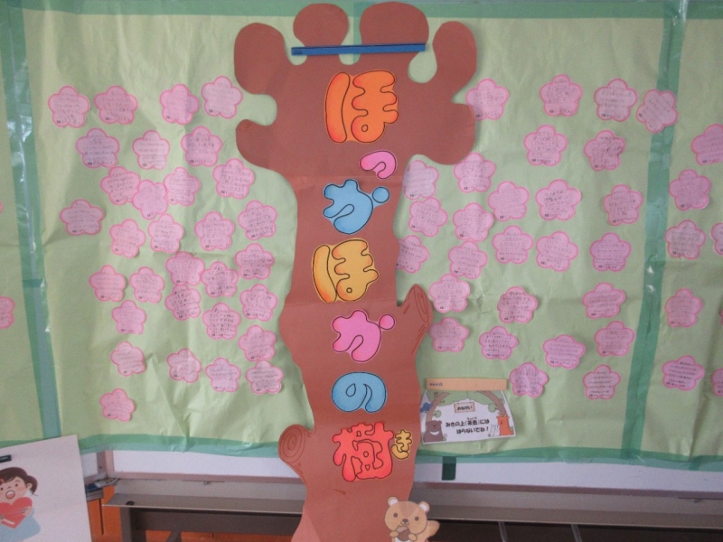 ほかほかの樹のカードは、人権週間の期間中どんどん増え続け、昇降口にあるほかほかの樹に貼られていきます。