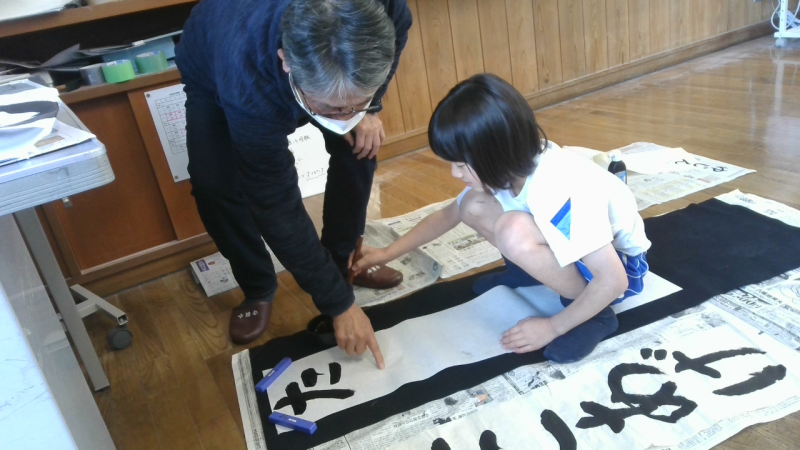 地域講師の先生にご指導いただきながら、一筆一筆丁寧に集中して書いていました。