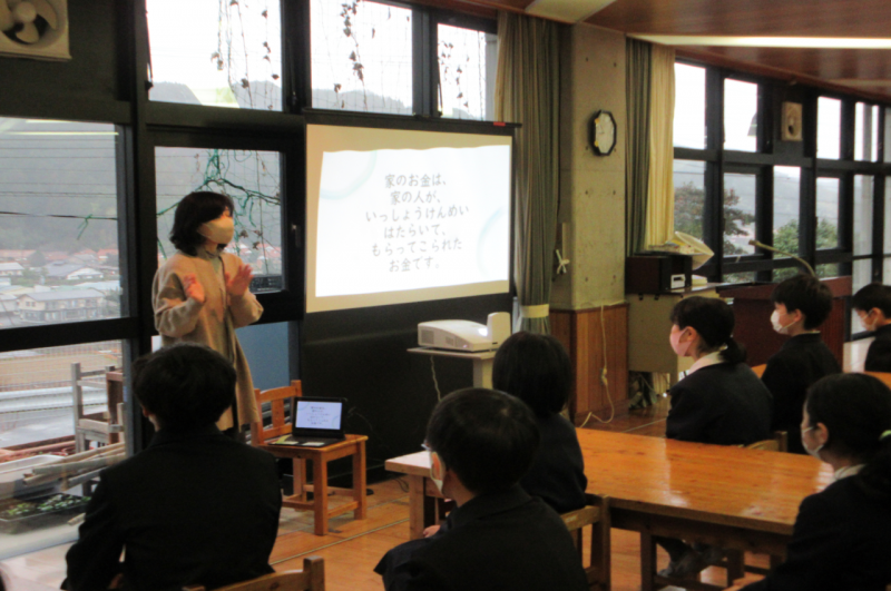 生徒指導の先生からは、お金を大切に使うことについてお話を聞きました。