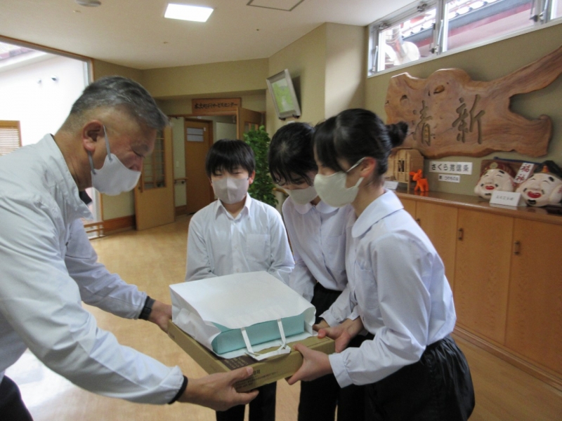 打ちたてのそばは、民生委員さんと一緒に、地域の高齢者の方々に配りました。子どもたちは、元気に声をかけてそばを渡し、おじいさんおばあさんにとても喜んでいただきました。そのお姿が、子どもたちにとっても嬉しい出来事となりました。