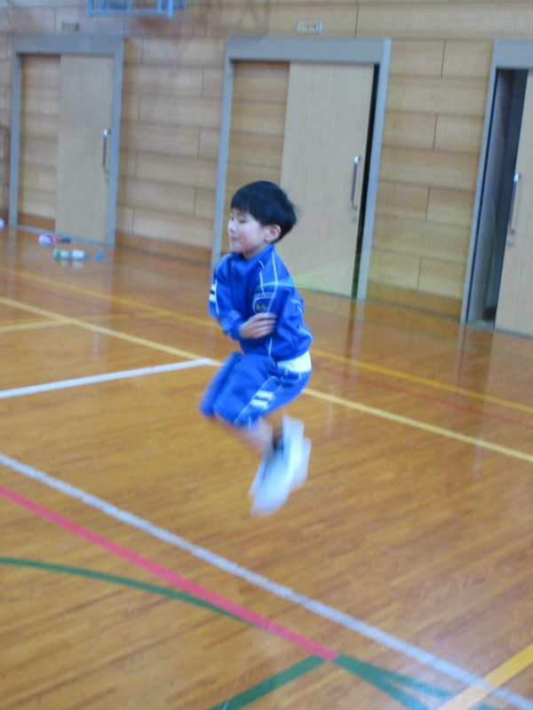 持久跳びでは、苦しくてもタイマーを睨みつけながら跳び続けました。途中で縄にひっかかって残念そうな子もいましたが、体育の時間よりもたくさんの子が目標タイムを達成していました。