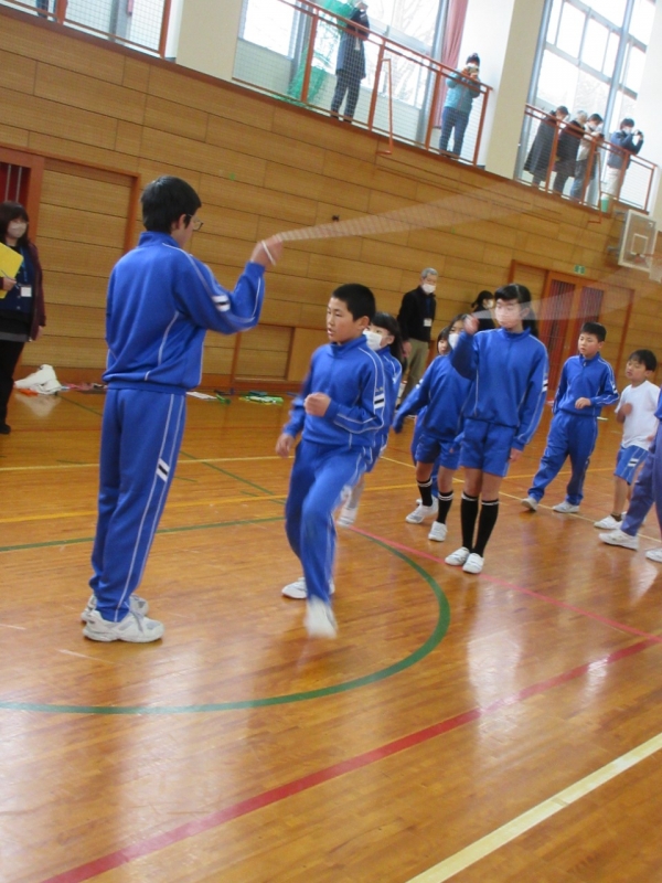 種目跳びでは、ハヤブサや後ろ二重跳びなど難しい技にチャレンジした子もいました。上学年が跳ぶ姿を憧れの眼差しで見ている低学年の子もたくさんいました。