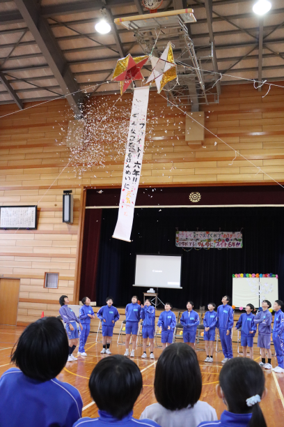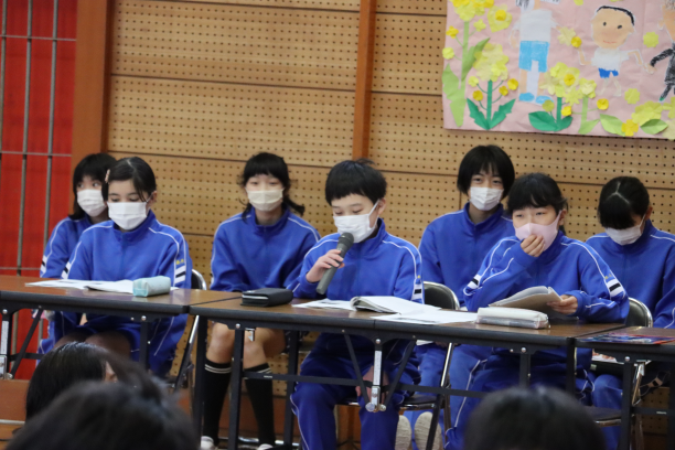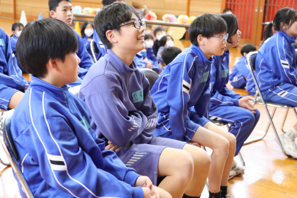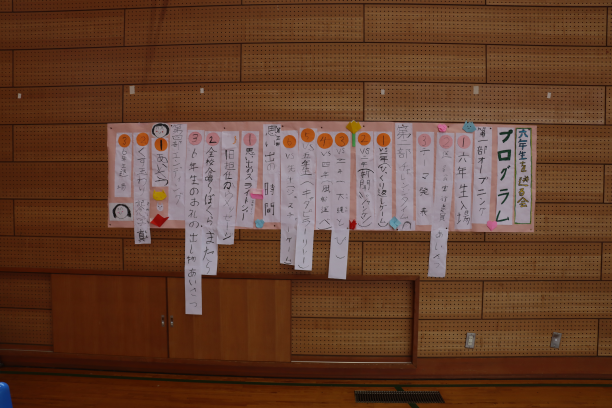 「やさしくささえてくれて ありがとう。中学校でも 懸命にファイト6年!」のテーマのもと、6年生を送る会をおこないました。