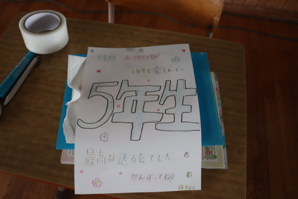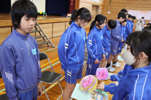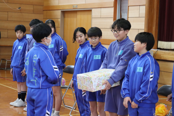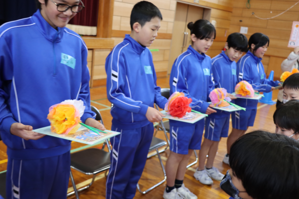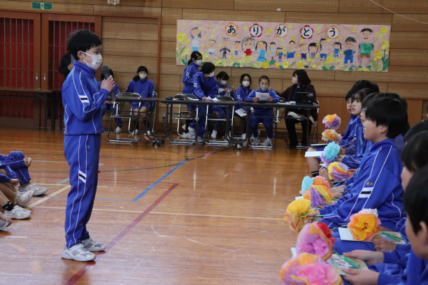 この1年間、寺領小学校の最高学年として学校のためにたくさん活躍してくれた6年生。6年生に対する下級生の思いが形になっていました。