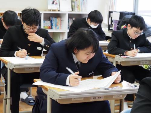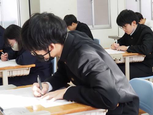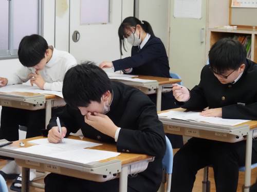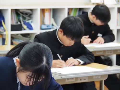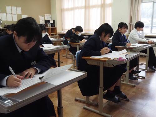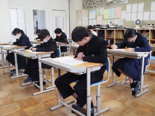 テスト中はみんな真剣そのもの。(←当たり前ですが。) 今日は2教科のみであとは授業と防犯教室。明日は残りの3教科があります。あとひと踏ん張りで少しゆっくりできますから今晩もファイト。