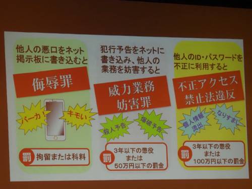 6時間目は出雲警察署、雲南警察署、掛合駐在所から3名お見えになり防犯教室。初めは情報モラルそして後半は不審者対応。ネットトラブルはもう何度も聞いたことがあると思いますが、改めて危険と隣り合わせということがわかったと思います。被害にあわない、そして加害者にならないように今一度自分のことを振り返ってみましょう。