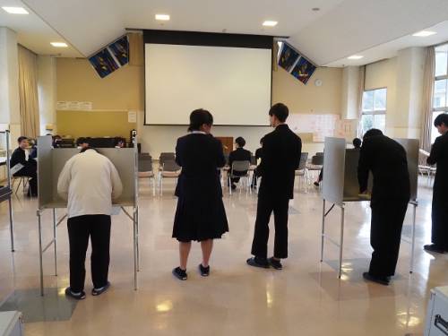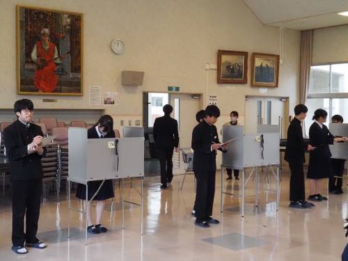 これから一年間の掛合中生徒会の顔となり学校を引っ張っていく生徒会長を決める選挙がありました。誰が会長に当選してもみんなでよりより掛合中を創っていくことに変わりありません。受け継がれてきた伝統を大切に継承するとともに、新たな取組や未来志向の生徒会になることを期待しています。投票は選挙管理委員会のきめの細かい準備と進行のもと厳粛に行われました。