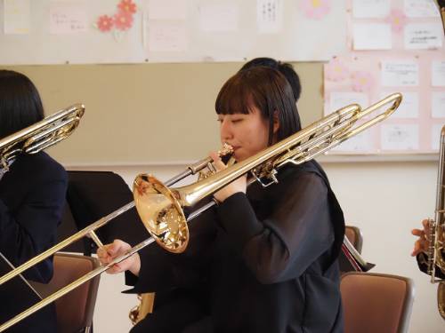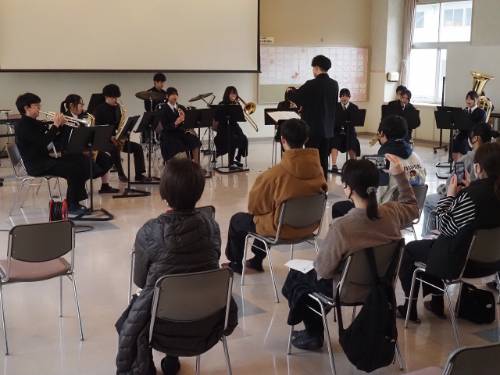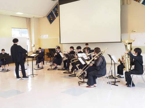 吹奏楽部の「THANKS CONCERT」がありました。1、2年生の部員が、これまでお世話になった先輩や日頃から活動を支えてくださっている保護者の方々に感謝の気持ちを伝えるコンサートです。この1年間、夏休みの練習などで指導に来てくれた大学生3人も演奏に加わり、とても心温まる和やかな時間となりました。