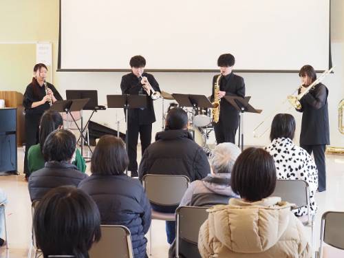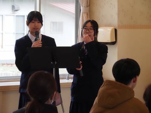 1、2年生の皆さんは、今日のコンサートを節目にまた前に向かって頑張りましょう。3人の大学生のうち2人は、4月から音楽の先生として教壇に立たれるそうです。2人とも県外ですが、島根から応援しています。人と人が音楽を通してつながるって、とても素晴らしいことですね。