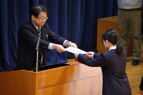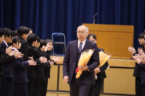 令和7年度が終わり、代表2名に修了書を手渡しました。各学年の教育課程の修了、そして進級おめでとうございます。私がお話したことを思い出して、よい春休みを過ごしてください。えっ、もう忘れたって!!