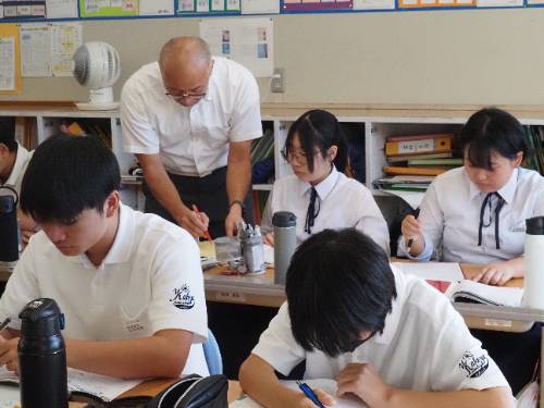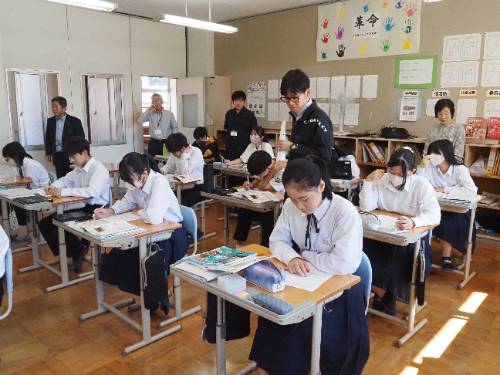 雲南市教育委員会の学校訪問があって小田川教育長と大森統括監のお二人が来校されました。どの学級も意欲的にそして楽しそうに勉強していました。移動教室の整理整頓や掲示物などもちゃんとしていてお褒めの言葉をいただきました。