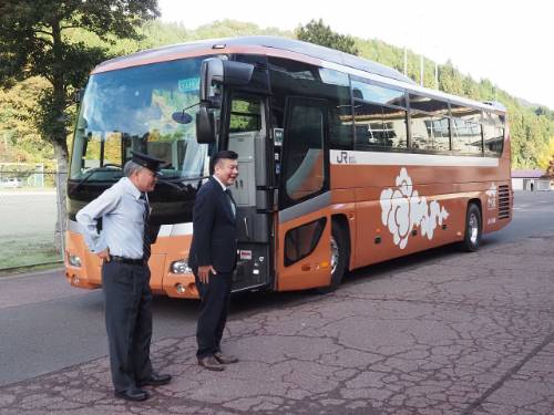 朝、「ラッピングやくも」のバスが来た時はすごくテンションが上がりました。273系新型やくもの運行1周年を記念してJR西日本とJRバス中国が企画した車両です。1台しかないので奇跡的なめぐりあわせです。話題のバスなので研修地に着くたびに観光客の目を引いていました。他の旅行会社のガイドや運転手さんも写真を撮っていました。