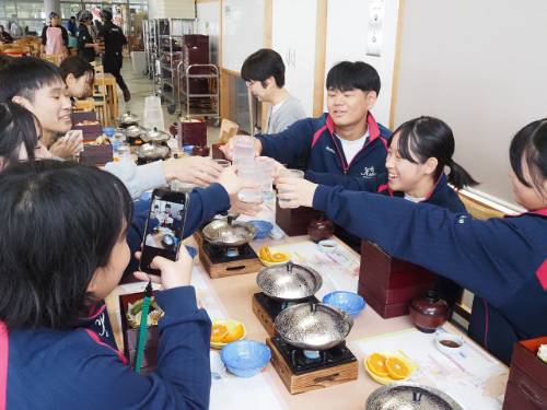 修学旅行の4日目という訳ではありませんが、2年生は特別な1日を体験しました。「しまなみ海道研修」です。前回は伯方島から多々羅大橋を渡って大三島までの約16kmコースでしたが、今回は瀬戸田サンセットSGの周辺散策約10kmを体験。耕三寺の紅葉やお店巡りなどを楽しみました。早く帰着したチームはビーチバレー遊び。やがて全員で浜辺で遊んで記念撮影。10月には成功しなかった全員ジャンプに再挑戦して何とか・・・・。ラーメンを食べてお腹がいっぱいの人もいましたが、あの時と同じ昼食会場に向かいました。
