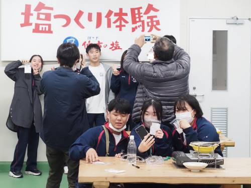 前回よりも更に豪華な海鮮弁当をいただいた後、伯方の塩大三島工場で塩づくりを体験し工場を見学しました。塩分濃度約25%という海水の8倍もある超濃厚塩水(かん水)180mlを煮詰めると、何と50gもの塩ができました。持ち帰った「My Salt」はぜひ17日(月)の「お弁当の日」で使いましょう。18:20帰校で特別な1日はあっという間に終わりましたが、一生の思い出になりました。
