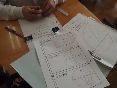 1年生の数学によく行くのですが、今はコンパスを使っていろんな作図の勉強をしています。垂直二等分線や角の二等分線はもちろんのこと、ちょっとした応用問題も。図形の勉強は面白いので私は好きですが、そうでもない人もいます。期末テストの範囲なのでガッツリ復習しましょう。