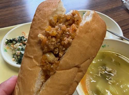 2025.12.23 Happy Lunch Time 初めて食べる「スラッピー・ジョー」です。アメリカ生まれで子どもから大人まで人気がある定番の料理のようです。ミートソースをパンにはさんで食べると言えばわかりやすいですね。職員室で食べながら名前の由来を調べている先生がいました。とてもかっこいいネーミングですが、実は・・・・(笑) ごちそうさまでした。