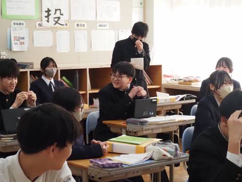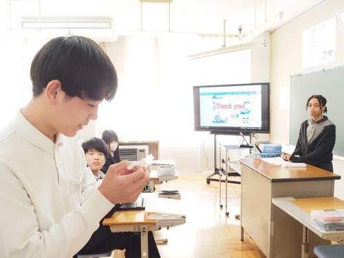 「え~っ、酢の物?」と教室の中に驚きの声が広がりましたが、実際は「I like Chinnamonroll.」でした。着任したばかりのALTリア先生の好きな食べ物のことで、酢の物ではなくシナモンロールです。発音が似ているのかな? 苦手は納豆で、焼き肉やビーフシチューがお好きとか。ちなみに回転ずしは●●、コンビニは●●一択のようです。日本語がとても上手です。