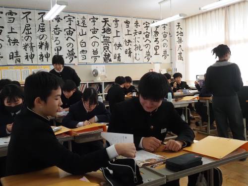 他にも趣味などをたくさん聞きましたが、個人情報ばかりなのでこのくらいにしておきます。あっ、アメリカのイリノイ州出身です。実を言うと、あとで職員室で聞いたら「酢の物」も好きと言っていました。芋けんぴも。