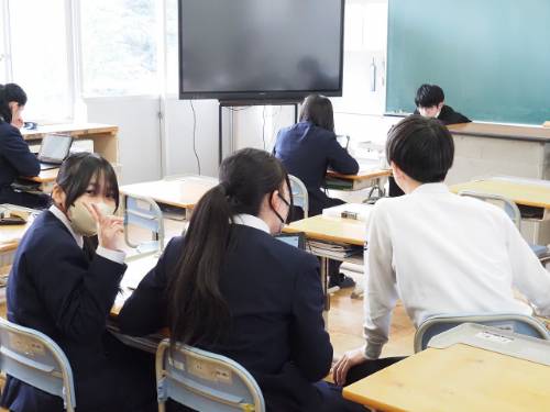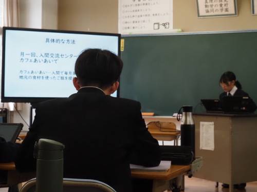 2月3日(火)の学校公開日に向けて、どの学年も公開授業の準備中です。1年と3年はまだ作成中でしたが、2年生は発表のリハをやっていました。具体的な内容は当日のお楽しみとしますが、どの学年も総合的な学習の時間の成果発表です。