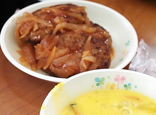 今日は久しぶりのパンです。濃厚なトマトソースのハンバーグを挟んで食べました。