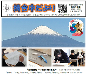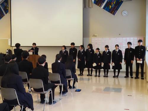 3年生は2か月後には卒業し新たなステージに旅立ちます。進級する皆さんも、ただ教室が変わるとか並ぶ場所が変わるというだけでなく、自分自身を変えていきましょう。今日より明日、明日より明後日、2学期より3学期、向上をめざして実りのある3学期になることを願います。
