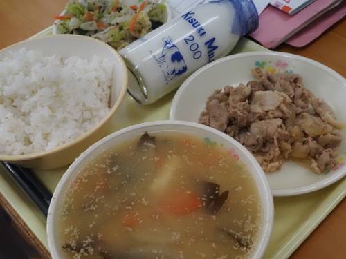 2月になりました。給食だよりを見ると、今月も話題の献立がいくつかありますね。今日は「まごはやさしいみそ汁」でした。2月の最終日も出ますよ。ちなみに、「ま」→まめ、「ご」→ごま、「は(わ)」→わかめ、「や」→野菜、「さ」→魚、「し」→しいたけ、「い」→いも です。