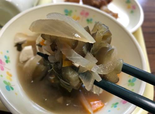 ひじきといえばカルシウムいっぱいの健康食。三重県や長崎県が主産地だが、国内で消費されている約8割は中国や韓国産。国産ひじきは高価で貴重。三重県といえば伊勢の国。平安時代の「伊勢物語」(←「昔、男ありけり」で始まるやつ!!)にもひじきが登場。給食って勉強になりますね~。
