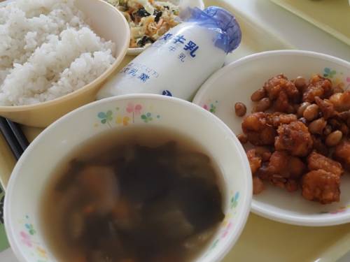 偶然でしょうか、昨夜はお惣菜の「ヤンニョムチキン」を食べました。今日の給食のほうが格段においしかったです。ちなみに「ヤンニョム」とは、韓国料理の合わせ調味料のことです。日本でいうなら、砂糖、醤油、みりんにニンニクやショウガなどを混ぜたものでしょうか。韓国のは辛めかな。