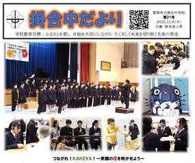 2025.11.6 インフルに注意!! 紅葉真っ盛りとは言えませんが、自然のコントラストが美しい季節になりました。大山は初冠雪、雪の便りが北国から届きます。まだ少し早いですが初めて迎える掛合の冬にドキドキします。(←以前、掛合の旅館に寝泊まりしていた2年間は春から秋までだったので・・・・) 2年生は学力テストでした。元気そうですが雲南市内でもインフルエンザが流行ってきたので注意したいです。何と言っても来週は瀬戸内研修がありますからね。1年生も松江研修があるので気を付けましょう。もちろん3年生も。 夢の子園の子どもたちが校庭で遊んでいます。先生が両手で落ち葉を集めて空に放つと、子どもたちの歓喜の声とともに葉っぱが舞います。何とも美しい風景。