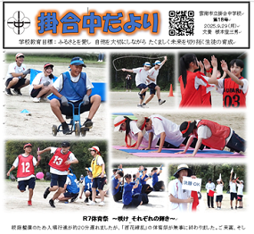 学校の方はいかがですか? 3年生は職場体験がスタートしました。1年生は学力テストだったと思います。5時間頑張りましたか?