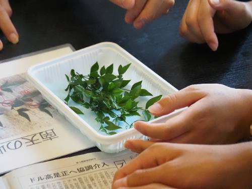 いよいよ4時間の上勝町パンゲア研修の始まりです。年商2億7千万円を超える「葉っぱビジネス」は、いろどり山フィールドワークと収穫・パック詰め体験。農家インタビューもとても楽しかったです。若手2人がとてもいきいきしていました。教員チームを含めて5班それぞれの「彩」ができたので、学校に持って帰ります!! プロの商品は確かにすごい(←当たり前)