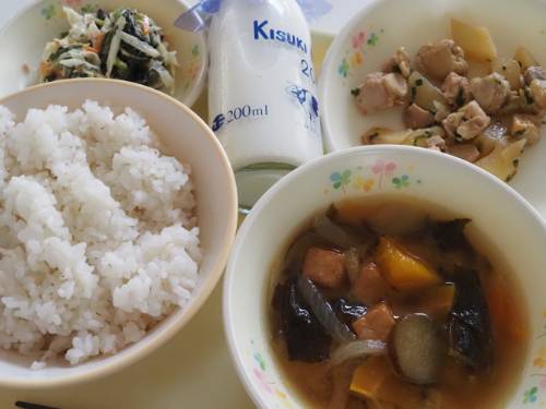 2025.9.25 Happy Lunch Time 午前中に体育祭の会場設営とリハーサルを行いました。みんなよく動いたので、おなかペコペコらしく、あっという間に準備が終わり、見に行った時にはすでに食べていました。青菜の和風マヨ和えがおいしかったです。明日はお弁当をお忘れなく!!