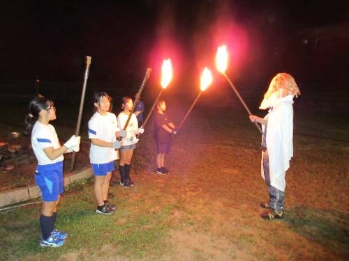 雨予報だったので、外でキャンプファイヤーか中でキャンドルサービスか、子どもたちで相談して外に決めましたが、この熱気で雨雲を吹き飛ばしたようでした。