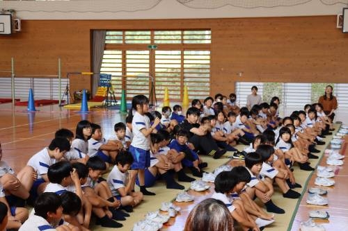 音楽鑑賞教室があり、地元の音楽グループ「掛合にぎやかし隊」の7名の方に来ていただきました。