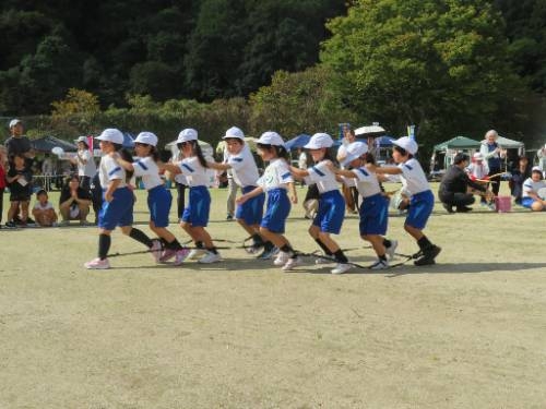 小学校からも1~3年生がかわいい子むかでを組み競走したり、4~6年生がかけや太鼓揃い打ちに加わったりと、お祭りを盛り上げるよう頑張りました。揃い打ちは、あの人数で打つとものすごい迫力で、力強い演奏とバチ裁きに心揺り動かされました。