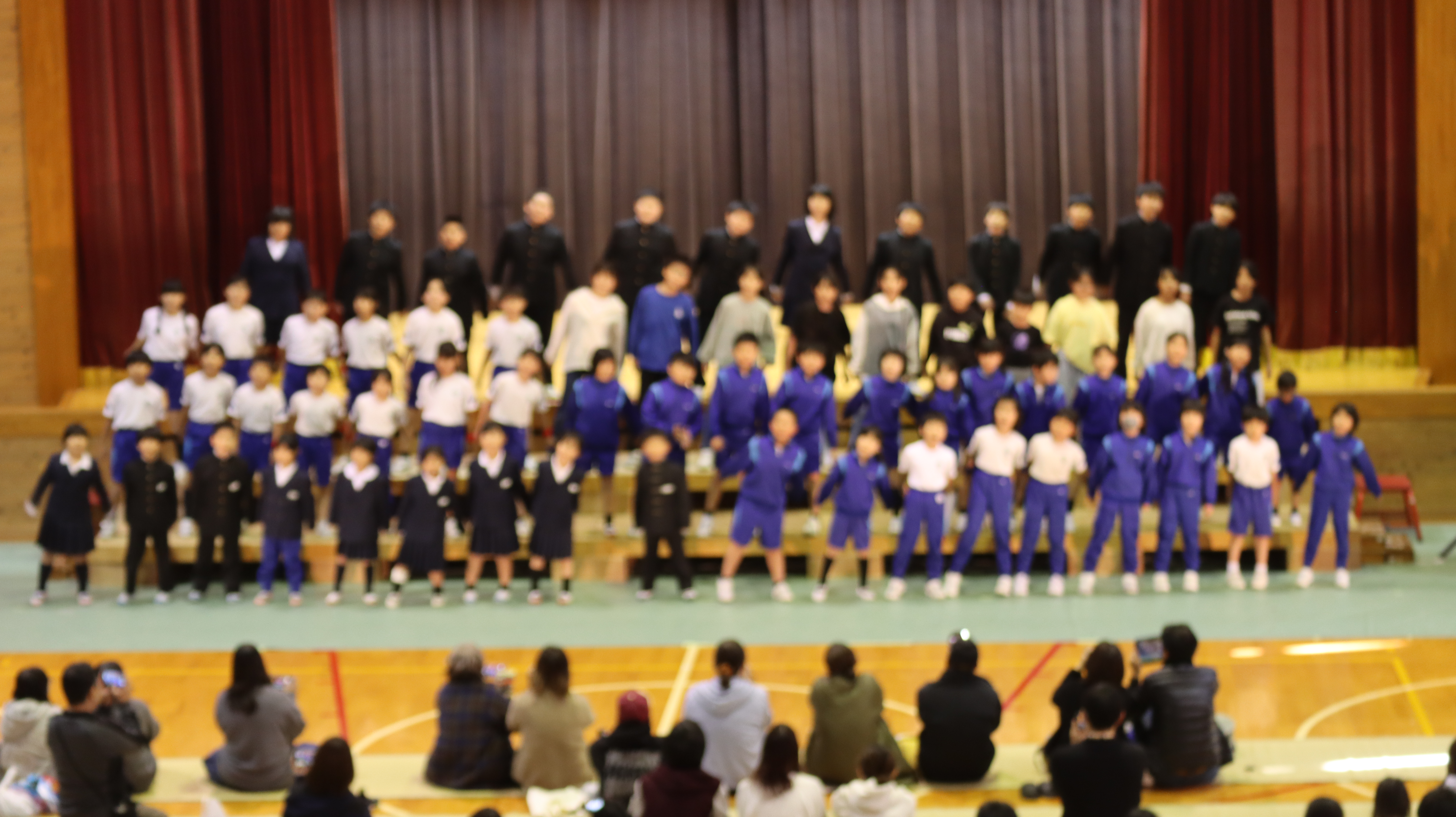 最後に全校合唱です。会場の保護者・地域の皆様の拍手やリアクションもあってとても温かい雰囲気となりました。子どもたちにとって緊張いっぱいながらも、大きな自信と達成感を得る学習発表会でした。