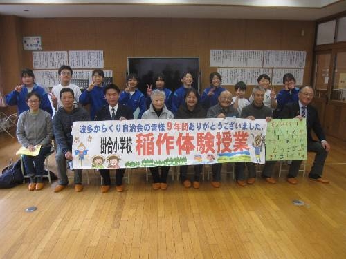 柄栗地区での米作りは今年度が最後となります。これまでの9年間分のお礼の気持ちを込めた感謝の会でした。