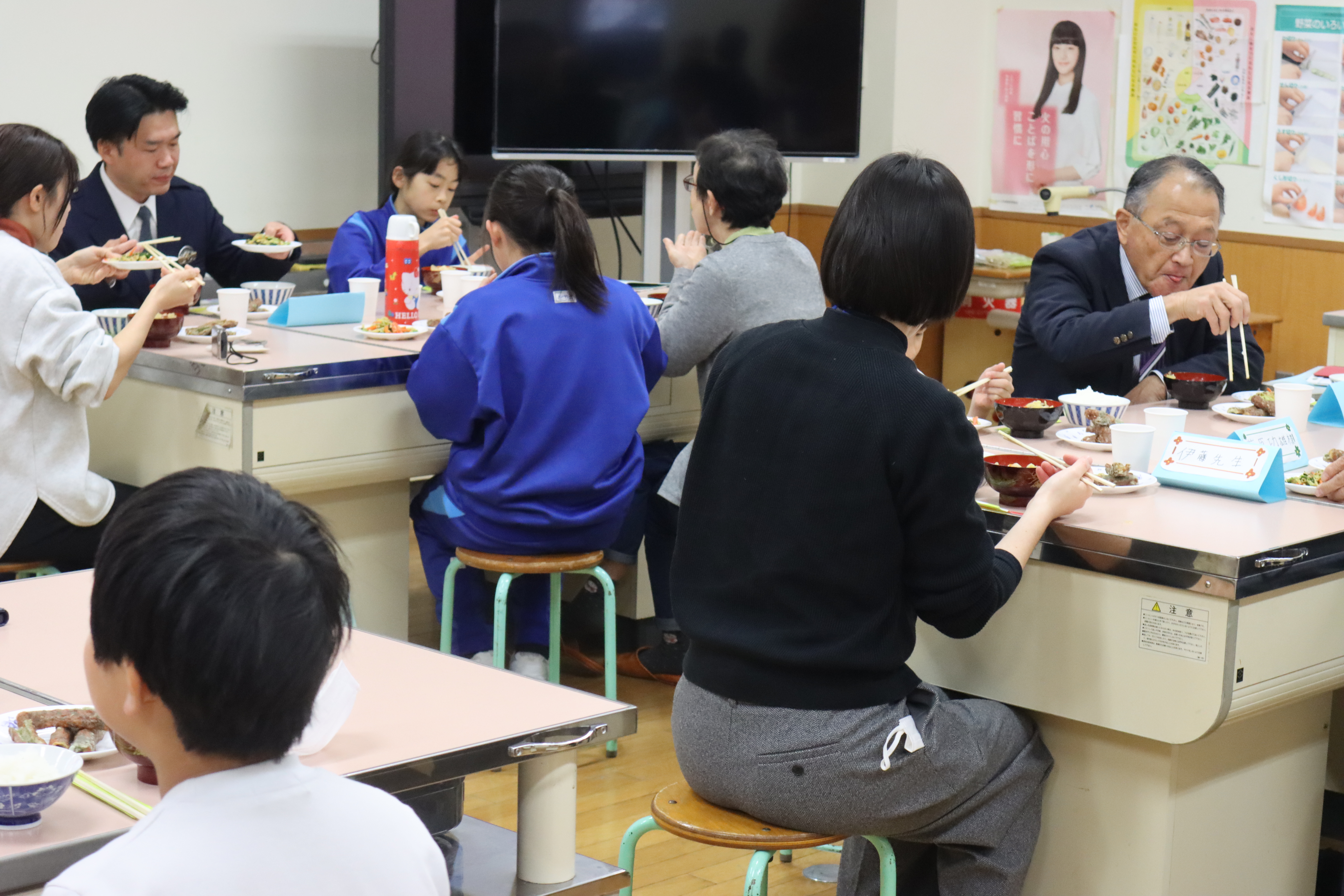 ちくわの磯部揚げ、さつまいも汁、納豆サラダなどを作り、会食で地域の方といただきました。ごはんはもちろん収穫したお米です。一生懸命作った料理でもてなし、地域の方との会も弾みました。