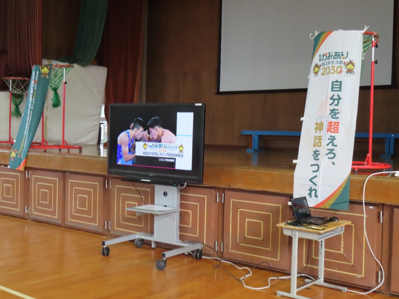 今日は2030年に競技の中心となる年代5・6年生にレスリングについて知ってもらうという