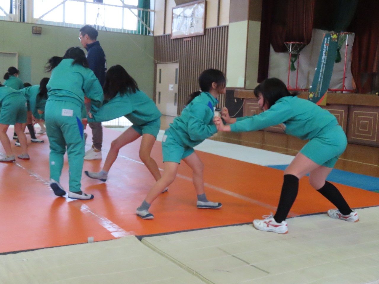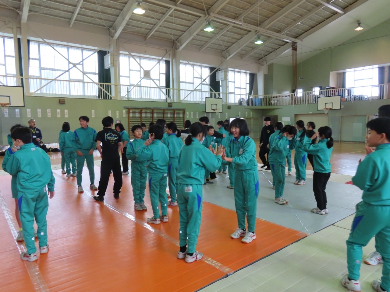 マットの上でレスリングの動きに近い運動をたくさん経験させてもらいました。