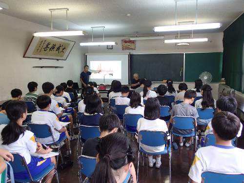 戦時中の生活の様子や木次町に残る戦争に関する跡について、お話をしていただきました。子どもたちは、自分の幼少期の体験と比べながら、お話される戦中の生活に思いを寄せたり、悲惨さに胸を痛めたりしている様子が見られました。